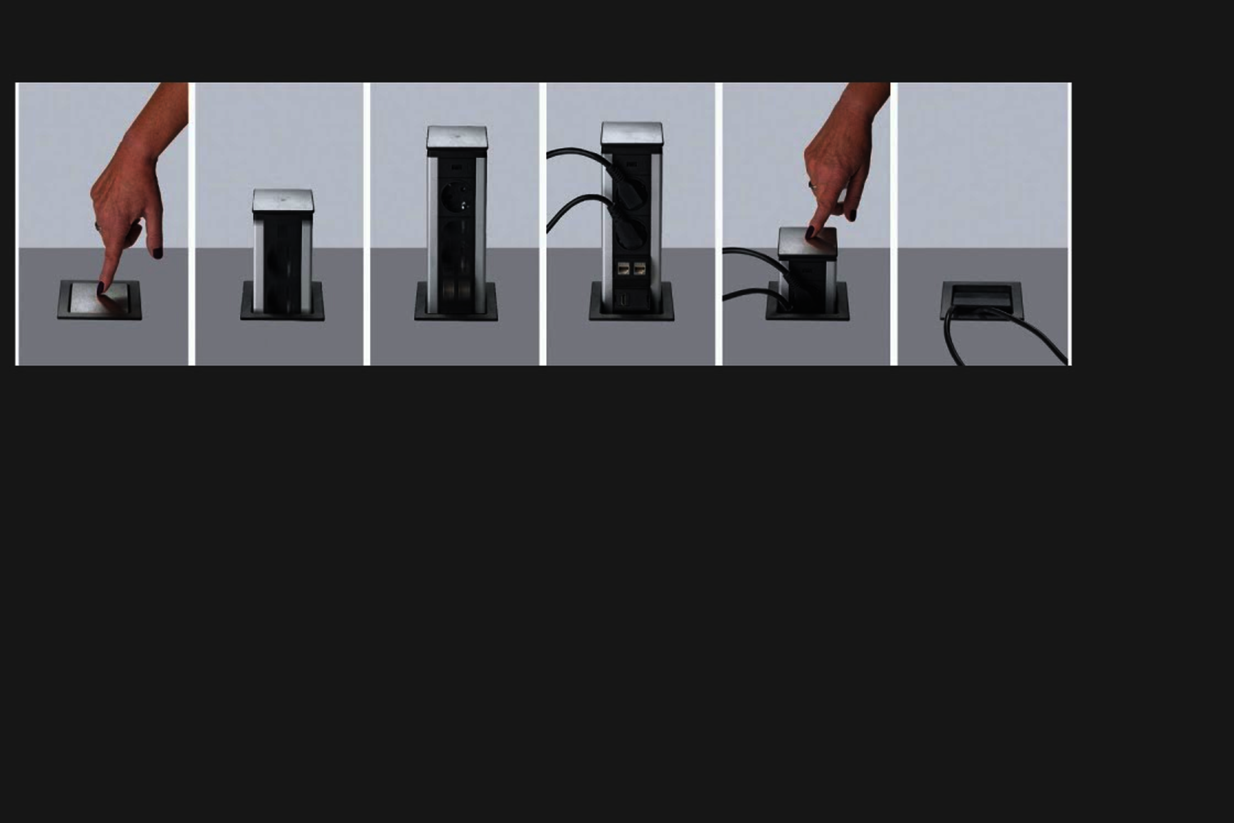Ein Druck auf den Deckel genügt und die neueste Generation des Port Push fährt komplett und eigenständig hinauf. Durch Runterdrücken des Ports lässt sich dieser wieder versenken und gleitet sanft in s