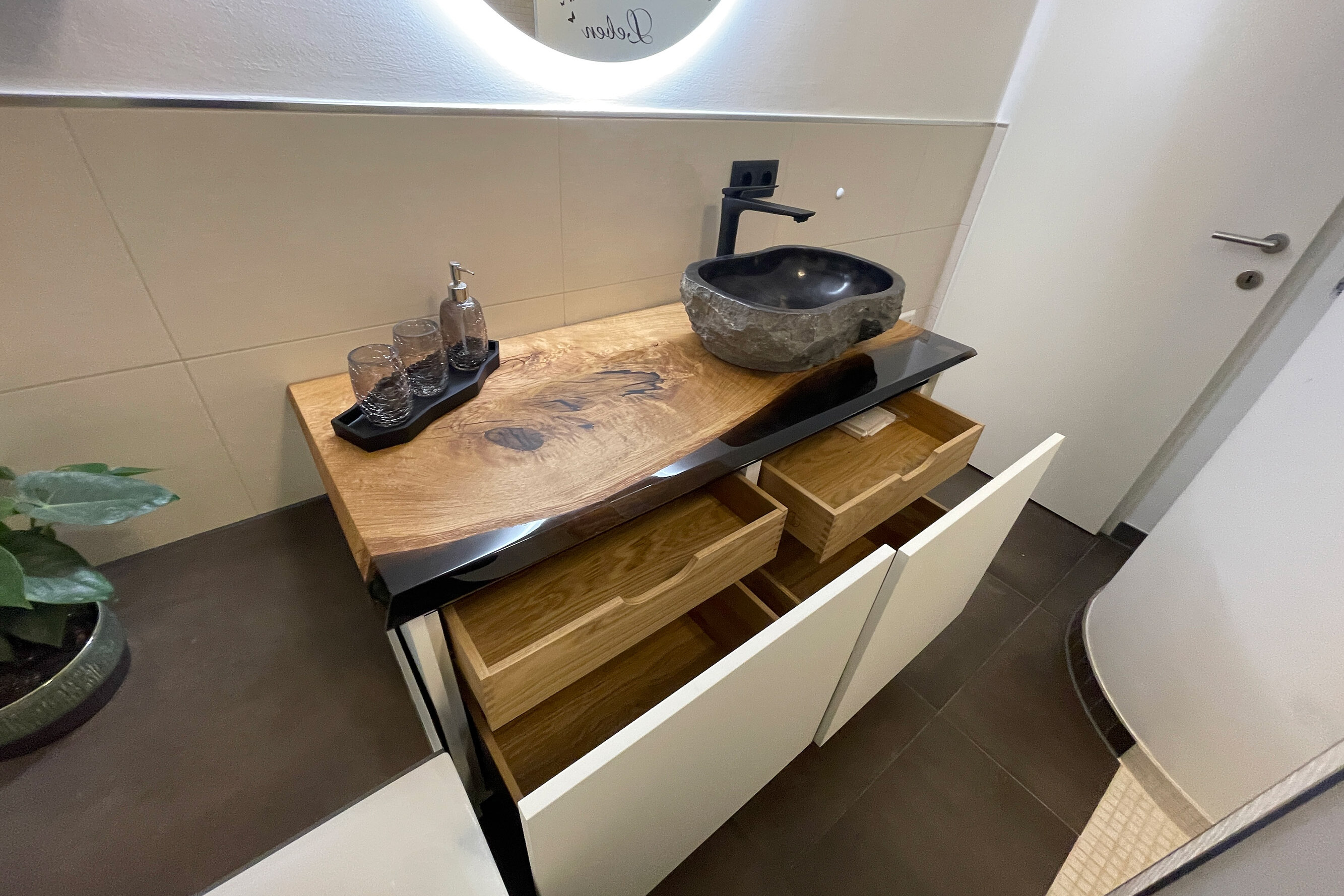 #1 Farbspiele Weiß ist immer noch beliebt, keine Frage: Doch bedient wird heute auch jeder, der das Außergewöhnliche sucht: Matte Wasch-becken in Anthrazit, Kaschmir oder Granat-apfel wie von Duravit,