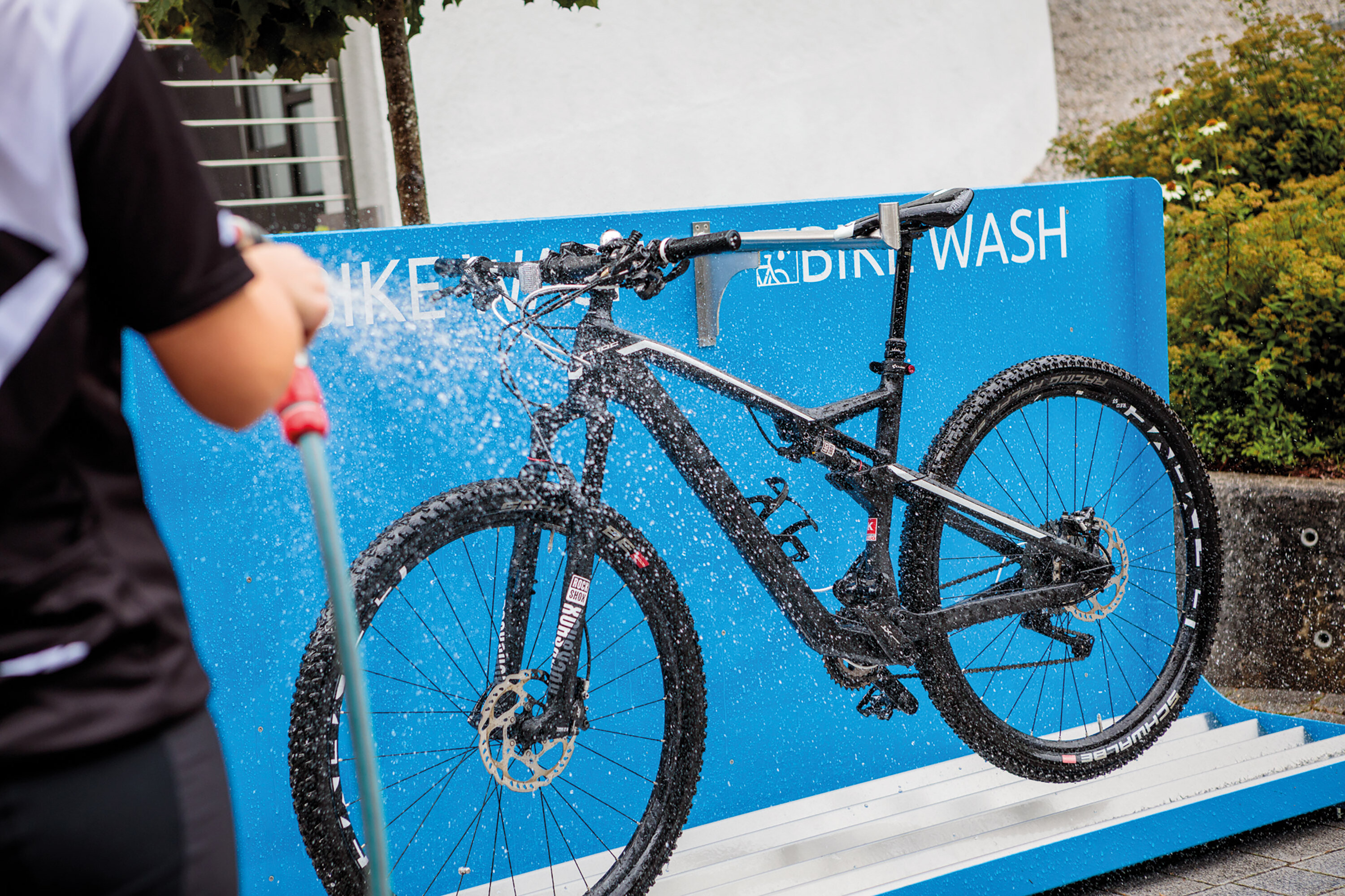 Wer kennt es nicht: Das Fahrrad ist verschmutzt und muss mit dem Schlauch abgespritzt werden. Was zurück bleibt, sind eine nicht mehr saubere Fassade, Wasserlacken und ein unschöner Bike-Bereich. Bike