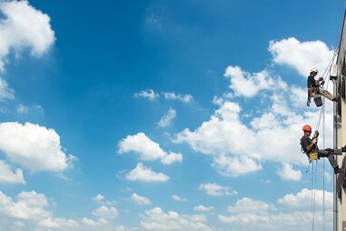 Stellen Sie sich vor: Montag hängen Sie in 150 Meter Höhe an einer Hauswand, Dienstag stecken Sie 100 Meter tief in einem Leitungsrohr, Mittwoch sichern Sie bei Sturm ein Dach, Donnerstag reinigen Sie